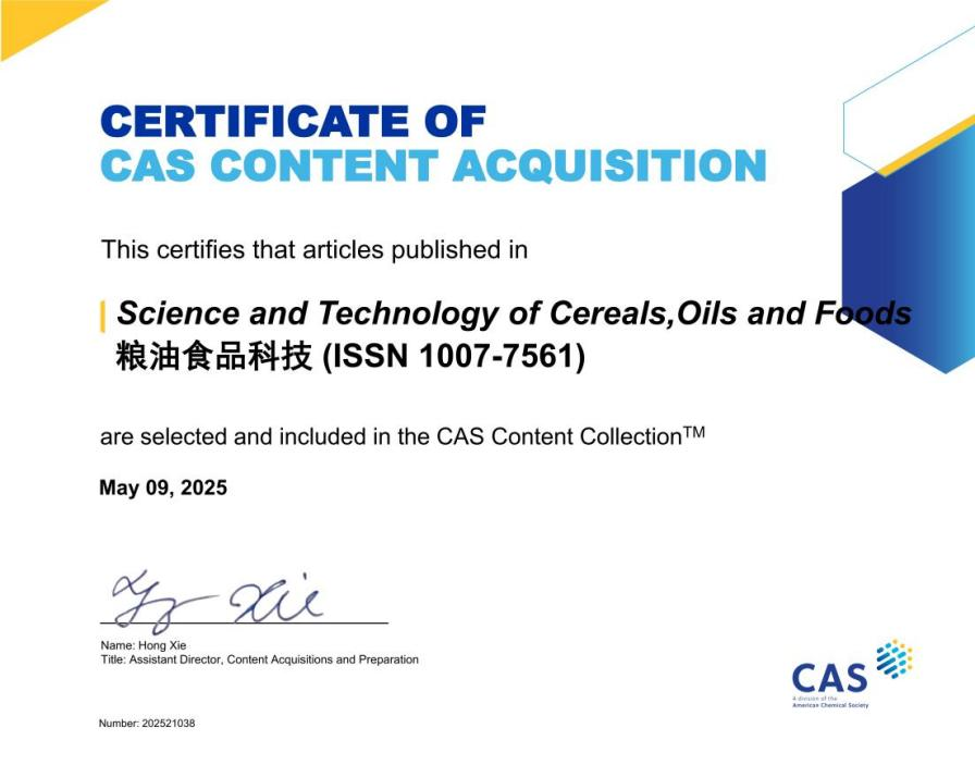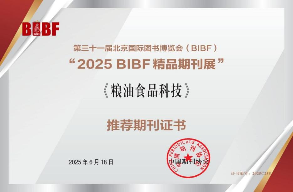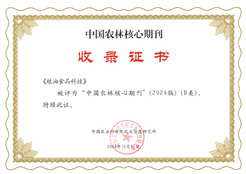 近期,國家糧食和物資儲備局科學研究院主辦的《糧油食品科技》被多家國內外數據庫收錄,學術傳播力和影響力進一步提升。